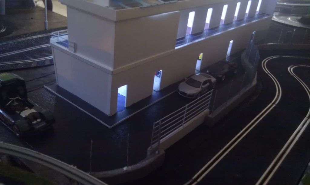 1.- Vista previa de la zona a remodelar: 2.- Proceso de construcción: 3.- Zona terminada. Faltarían elementos de decoración, como unas vallas, etc... 4.- Cierre de la valla del pitlane. La puerta no me convence demasiado...a ver qué opináis vosotros: 5.- Pistas del pitlane terminadas, a falta de cambiar un par de pistas para incorporar algún cruce: Y finalmente los nuevos miembros del garaje: