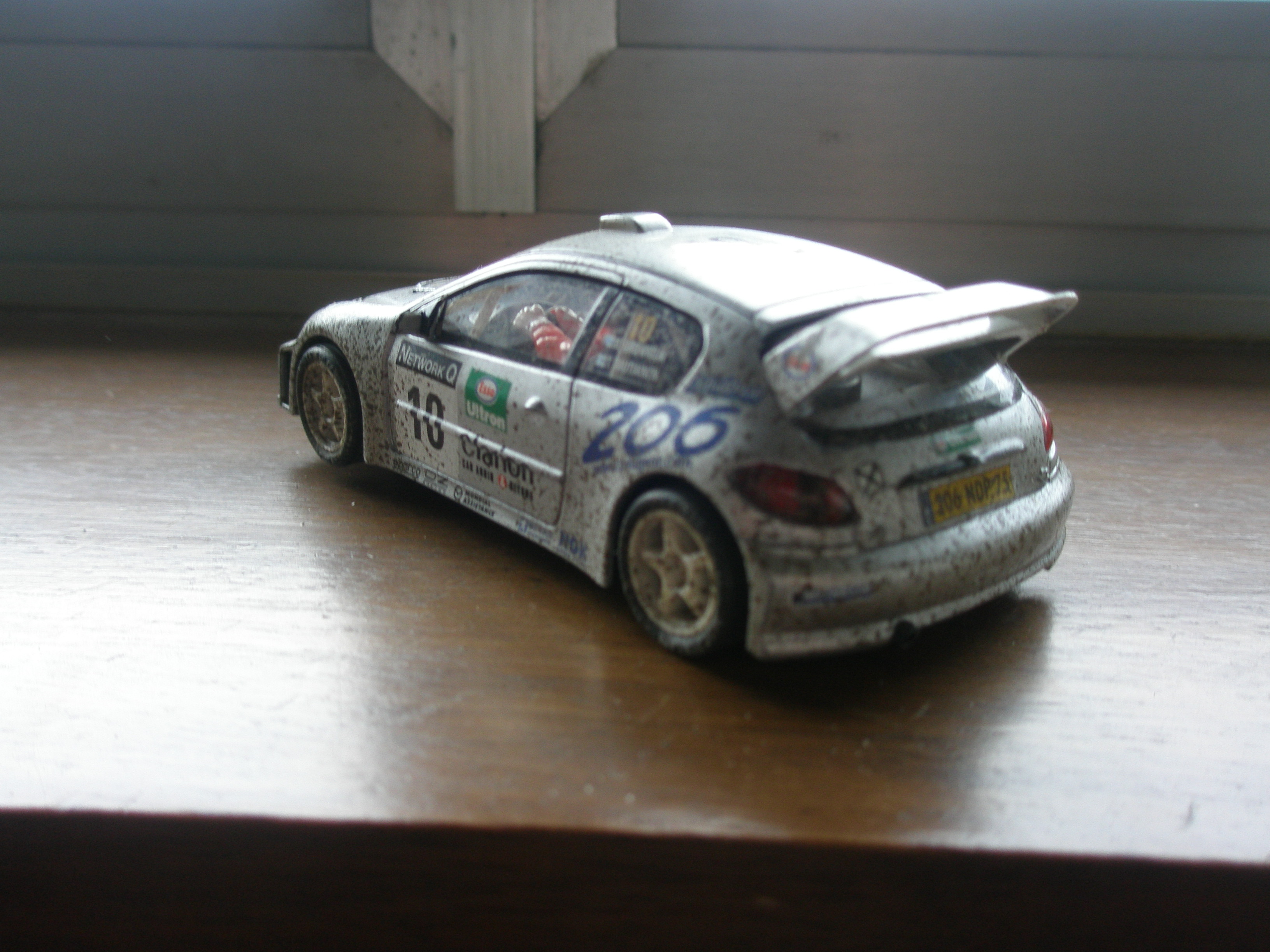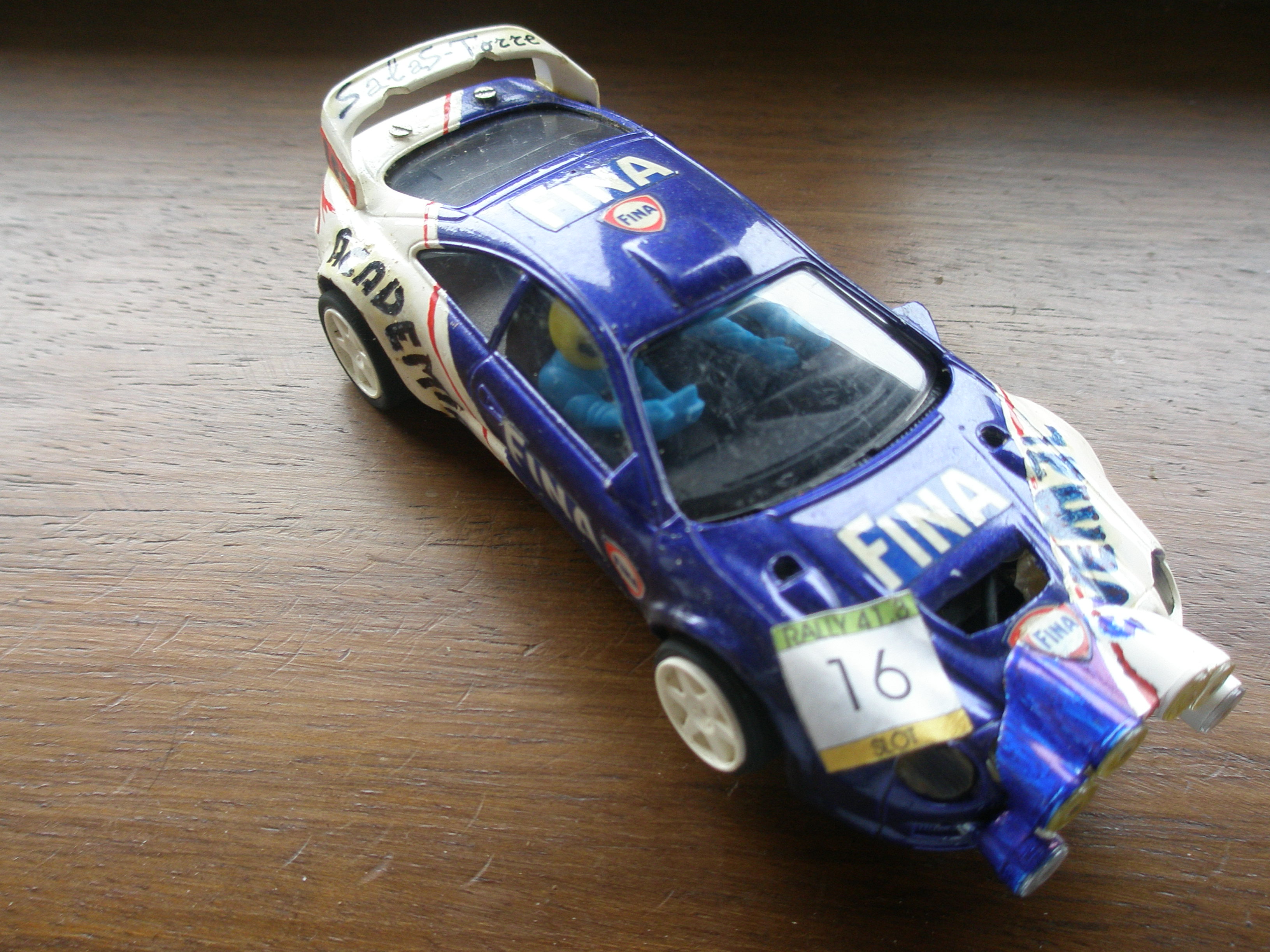 Voy a inagurar el apartado de Slot presentando mi pequeñisima y muy modesta colección de vehiculos de rallye. Hace ya unos años competía en rallyes de slot con mi toyota celica gt4 grupo A. Tiene pocas cosas hechas: carrocería rebajada y ensanchada, chasis aligerado y modificado, guía basculante, chistales de acetato mas ligeros, llantas y neumaticos de competición y la decoración exclusiva, incluida la parrila de faros de un ford focus. El resto de mi colección incluye un subaru imprezza del año catapún que comencé a pintar y nunca termine (me falta darle unas capas de laca), un 206 wrc y un xsara wrc, ambos de estricta serie y practicamente sin usar.